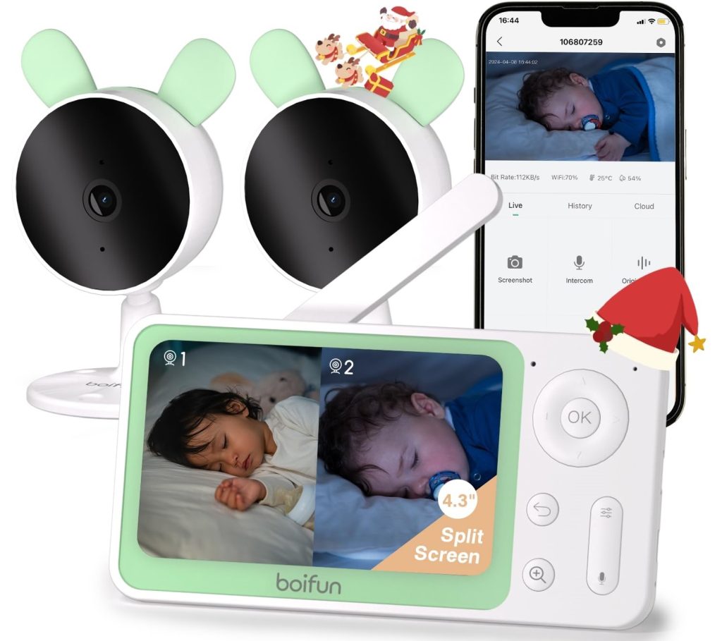 - 🟢 Schermo grande con funzione split screen per vedere entrambi i bambini insieme